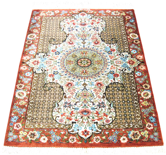 ペルシャ絨毯はその素材や製造方法から非常に堅牢で、何世代にも渡り末永くご愛用していだだける優れた実用品です。また、汚れや破損が発生した場合でも修復できる場合が多いのも特性と言えます。ただし、この商品のようなシルク素材では色艶劣化や破損修復に於いてウール素材よりも劣ります。