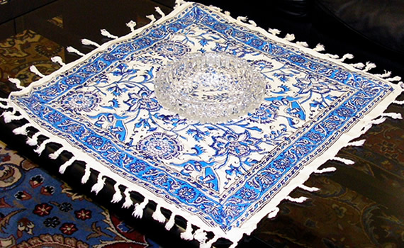 イランが世界に誇るハンディークラフトのペルシャ更紗です。このサラサ(更紗)は古来と殆ど同じ製法で作られています。手織りのやや肉厚の綿布にインクを付着させた版板で人が1つ1つプリントしています。